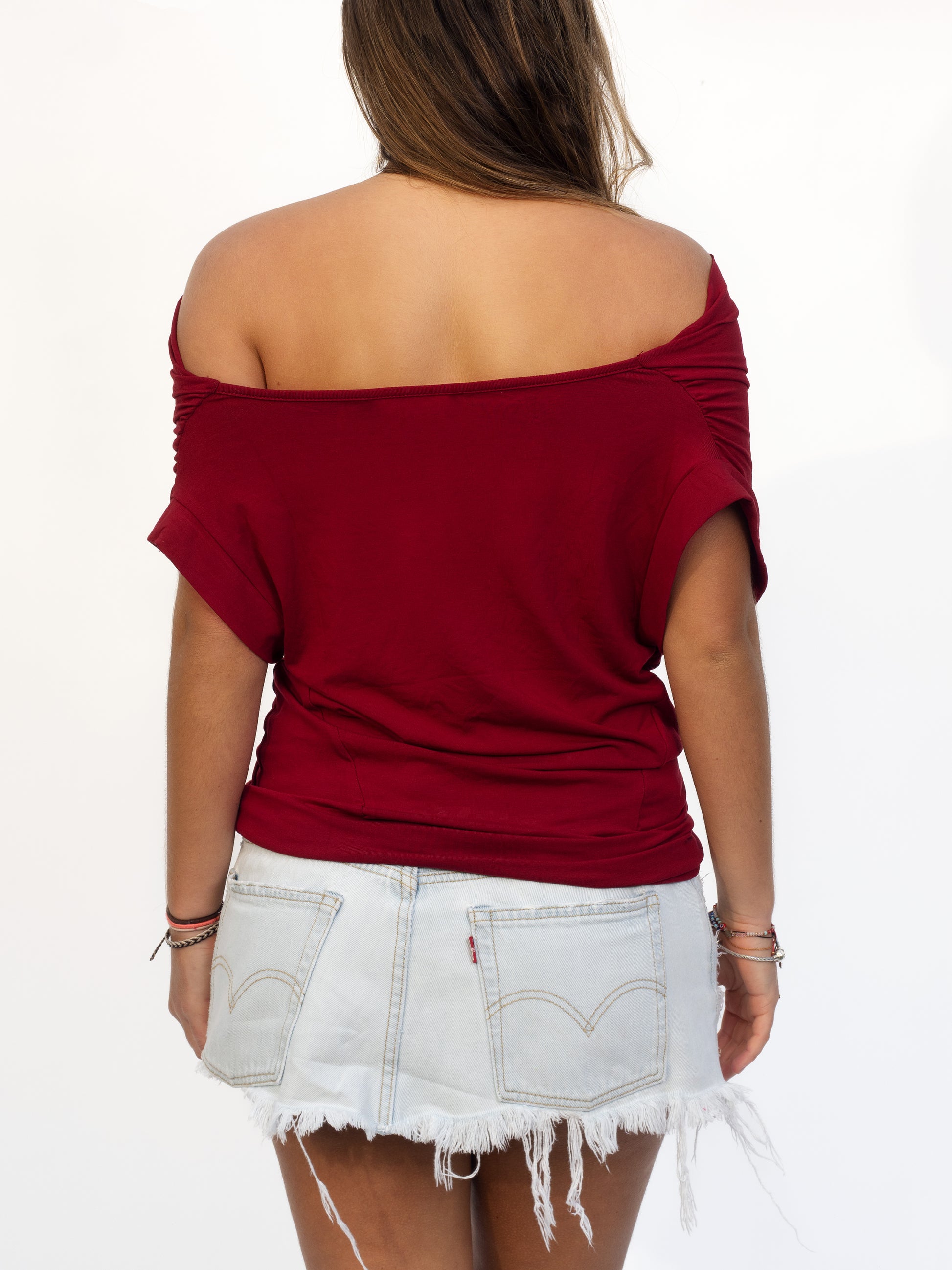 The Charo top, crafted from soft, buttery viscose, features a wide draped neckline that can be styled off-the-shoulder, as a cowl neck, one-shoulder, or in your own unique way. Designed as one size, it fits small to large best.